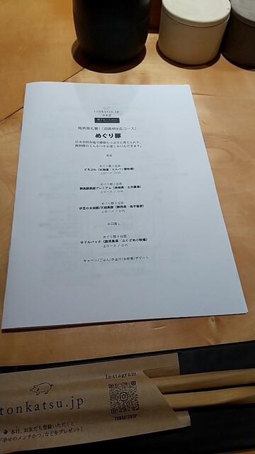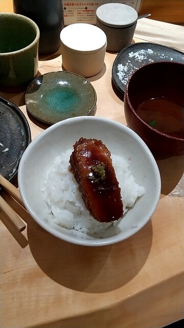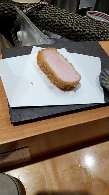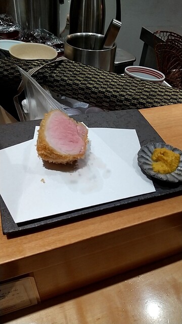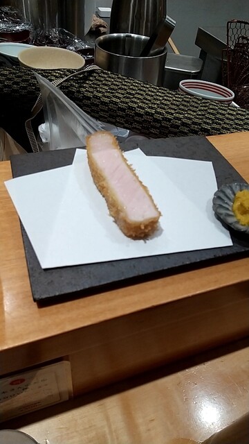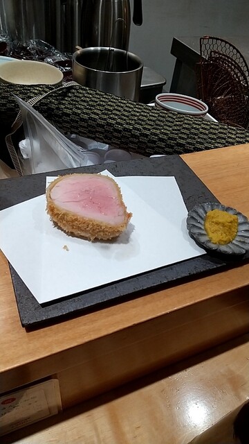 とんかつのコース料理。ロース、ひれ各々食べ比べをしてきました。銘柄にも各々特徴があり、四銘柄とも美味しかったが、一番のお気に入りは2つ目に出てきた長崎県土井農場の諫美豚がのひれが肉々しくて何枚も食べたいと思ったかな。最後のサドルバックも脂のノリが良くて、これが2番目に良かった。閉めのソースかつ丼で腹パンに。これで1万円以内でおさまるから嬉しいですね。食べ応え満点でした。