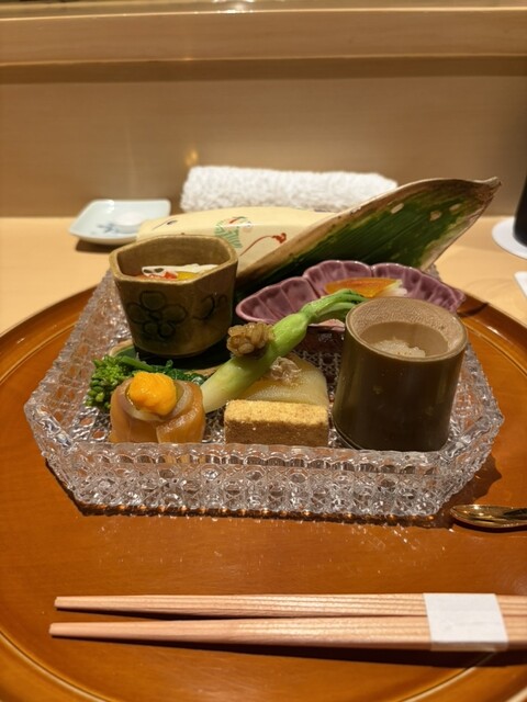 夏のメニューということで、今回は一品目から八寸が登場。涼やかなお料理を楽しめました。