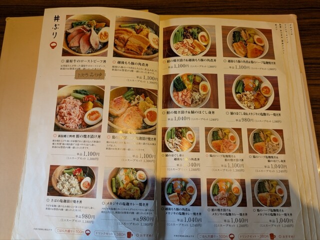 新潟満載御膳1880円、新潟おむすび御膳1380円を注文。