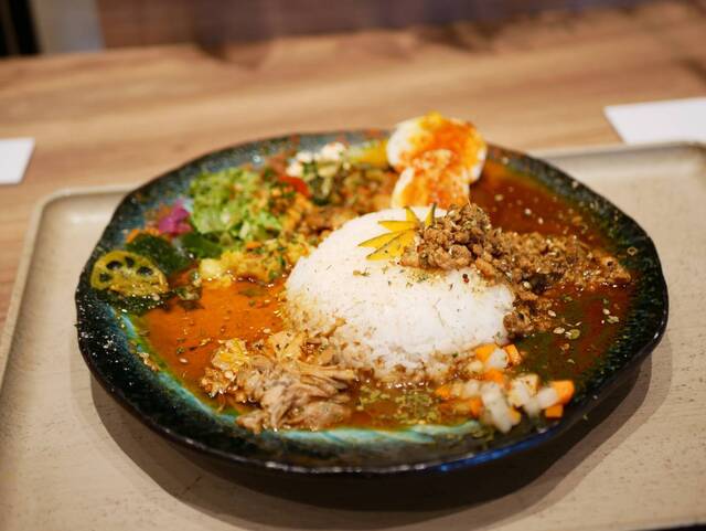 今回は、ボタニカリー/ボージョのあいがけご飯大盛り、トッピング卵ピクルス、辛さ普通にしました。