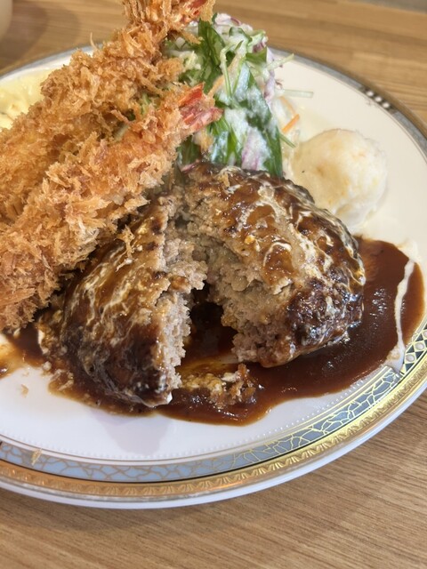 行列納得のクオリティ!肉汁溢れるハンバーグと絶品エビフライに大満足のランチ