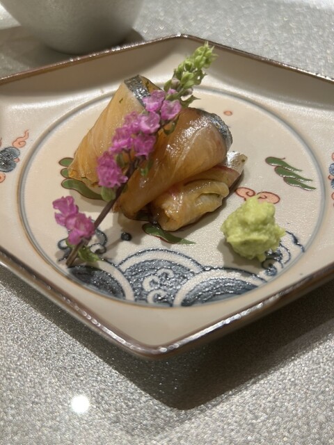迷わずおまかせコースと日本酒を注文。まずは秋田「刈穂」純米吟醸、ふわりと甘く、飲み口の優しい一本。最初に出てきたガリからすでに絶品で、思わずおかわり。続くいちじくの天ぷら生姜あんかけは、甘みと香りが絶妙に調和した初めての味。しまあじやさわらの握りは、丁寧な漬けと絶妙なシャリ加減に感動。小柱の海苔巻きやさんまも旨味が濃く、日本酒が進みます。