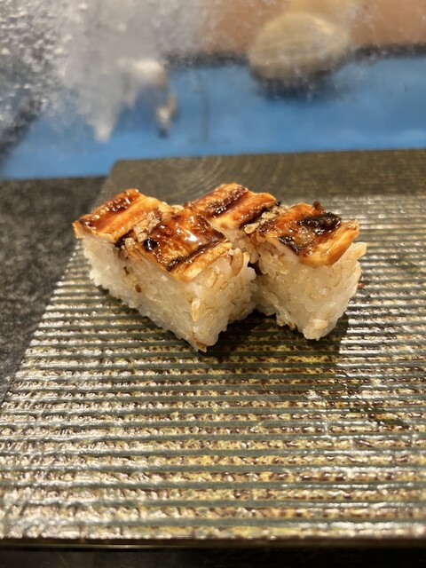 「ひらめの芽ネギ寿司」は縁側のコリッとした食感にポン酢おろしの清涼感が心地よく、「さわらのあぶり塩」は驚くほど柔らかく甘みがあり、食べた瞬間に思わず笑みがこぼれるほど。お酒も話もすすみ、来楽・龍力を追加。