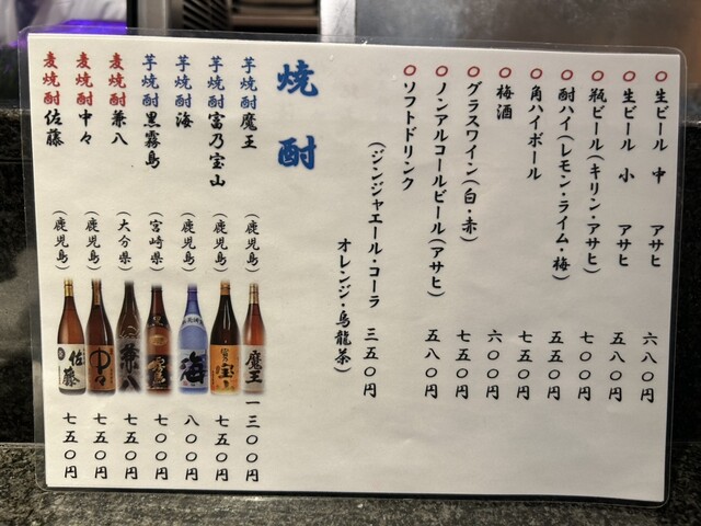 一階カウンターに並んで座り、“明石盛り”コースを注文。まずは真澄の冷酒で久々の乾杯からスタート。