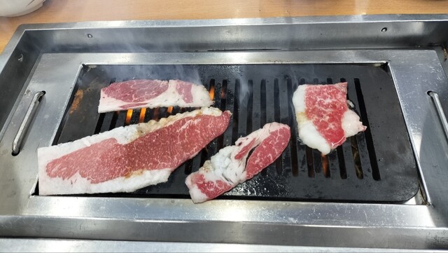 東京の有名店ばりの、駅から行きにくい場所にある焼肉屋さん。焼き物トップバッターに選んだシャトーブリアンはつねちゃんがベストな焼き加減で焼いてくれた。表面をパリッと焼いてくれて、中はレア状態。ほぼかまず...