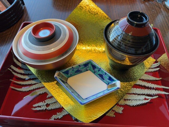 ここから朝食。インパクトのある茶箱が登場。