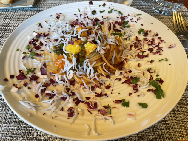 パスタはしらすと枝豆のパスタ。パスタの茹で加減がとても好み!