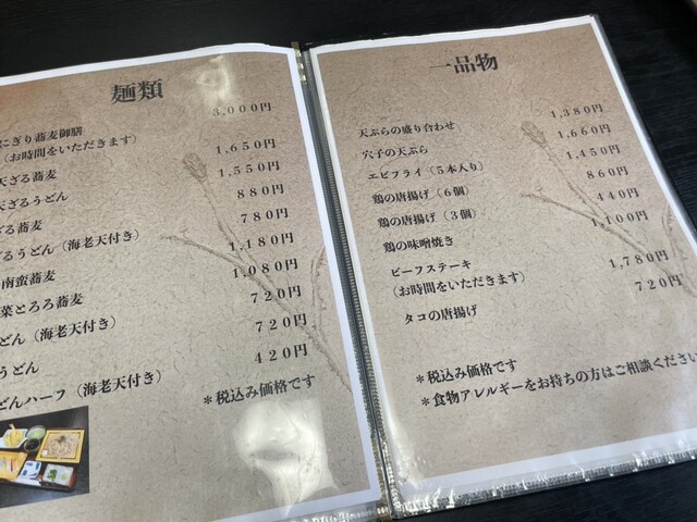 メニューは魚介料理やそばや天丼、ローストビーフ丼など種類豊富です。