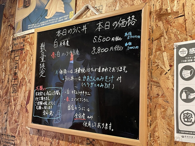 メニューは掲示されていた白うに丼か、赤白ハーフうに丼の2種類で折角なら両方食べ比べしてみたいと思って、赤白ハーフうに丼(8800円)を注文しました!