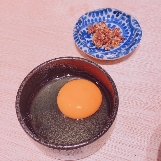 生卵に別添えで香ばしい薬味がついてくるので、ご飯をお代わりしてしっかりまた1膳を頂いてしまいました。