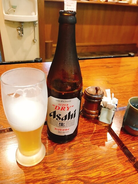 お目当ての十割そば二種食べ比べと野菜天ぷら盛合せ、瓶ビールを注文。
