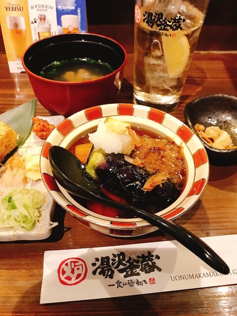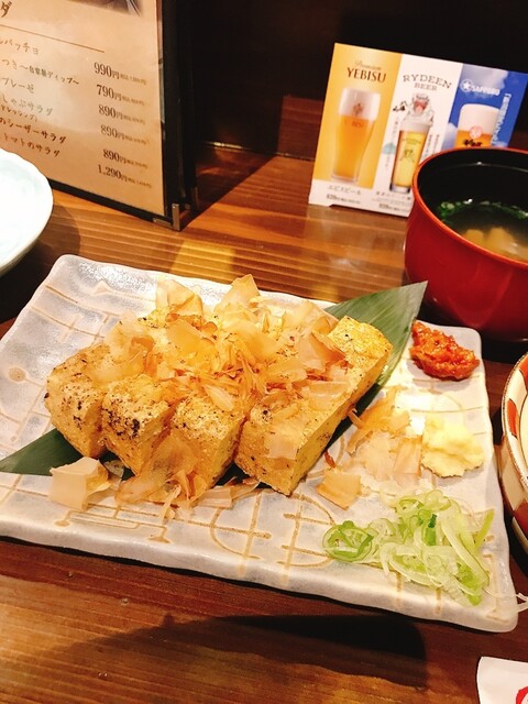 そして、角ハイボールとアテは、秋ナスの揚げ出しと栃尾のジャンボ油揚げ焼きのハーフを。