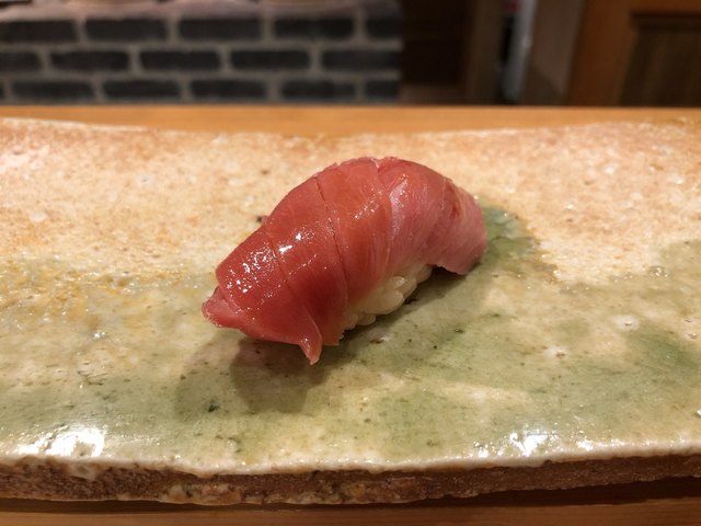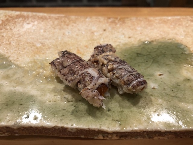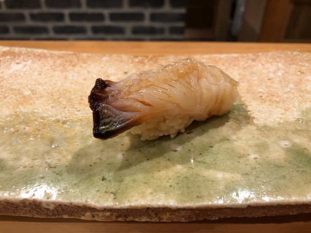 細魚の特に大きなものを閂と言うそうで、その握りは細魚にはない噛みごたえがある。春子鯛も小鰭も絶妙な締め具合で、口の中に広がる旨味は無限大だ。