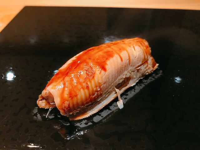 握りは北海道の北寄貝。大将はいつも一貫目の握りは趣向を凝らしてくるので今回何がくるのか楽しみにしてたが北寄貝からとは思わなかった!肉厚で甘み溢れる北寄貝、インパクトあった。