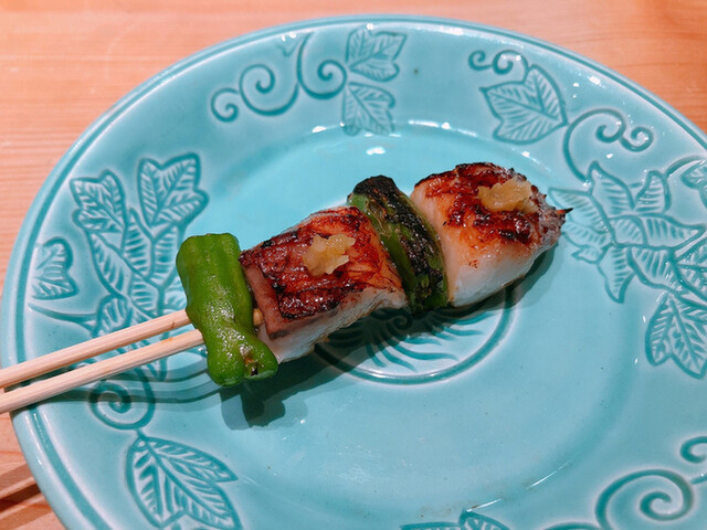 その後も、蟹と雲丹の和えた物や、葱鮪串焼、西京焼きなどついつい酒が進んでしまう罪な酒肴が繰り出される。そこに日本酒でもワインでもピタッと合わせてくるシニアソムリエさんの選球眼ならぬ選酒眼はさすが。