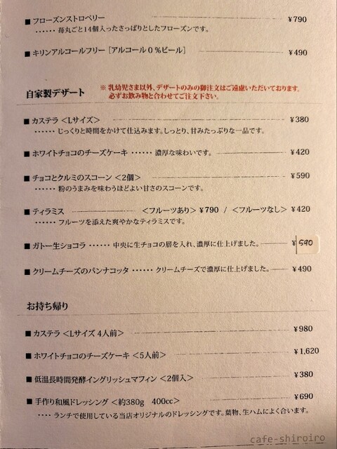 デザートは、カステラorホワイトチョコのチーズケーキ。