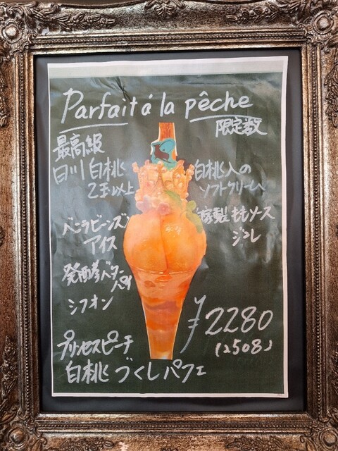 瑞々しくて甘い白桃を2玉以上使った贅沢なパフェ✧*。