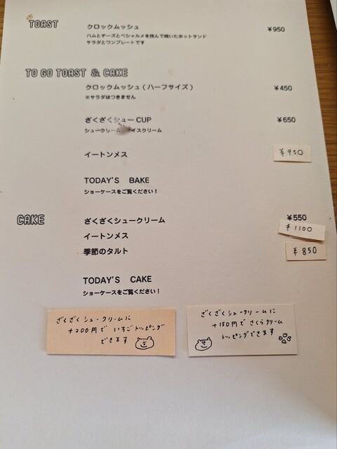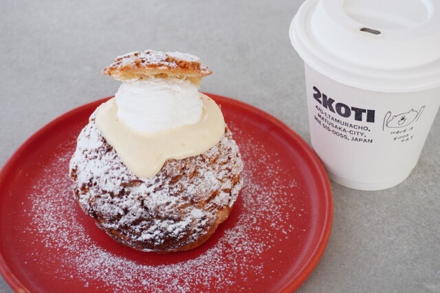 イートインメニューの「ざくざくシュークリーム」は、ザクザクのクッキーシューに、たっぷりのカスタードクリームと生クリームですが、