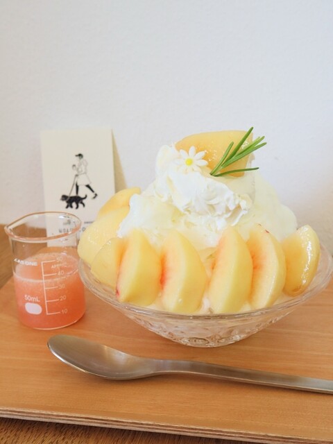 しっとりふわふわのミルク氷に、ジューシーでとっても甘い桃♡