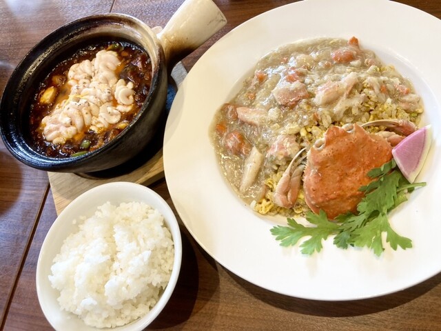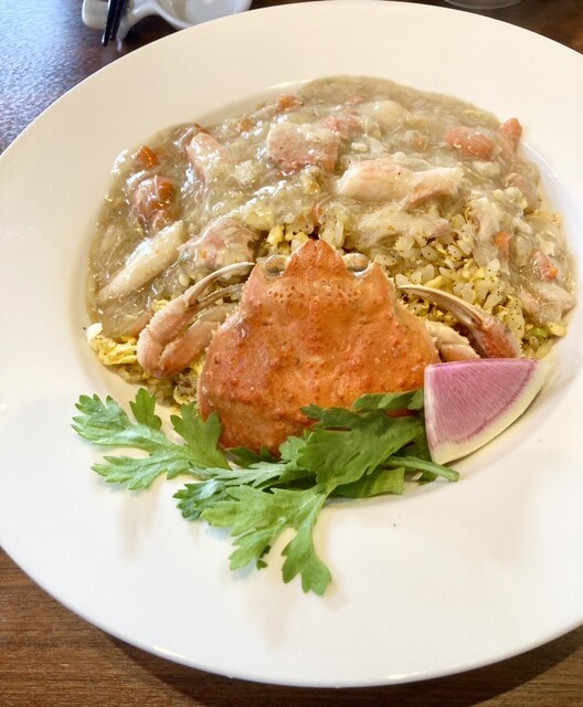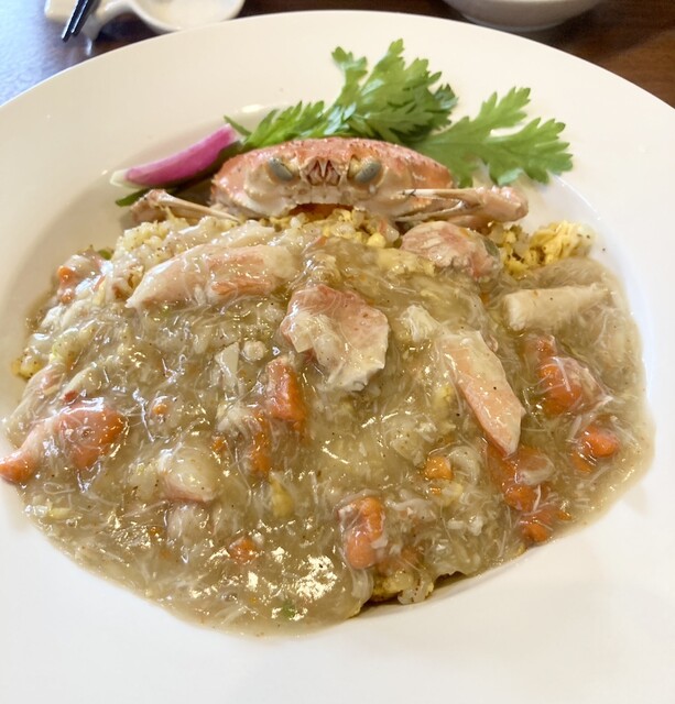 「蟹のあんかけチャーハン」は香箱1杯分の身と