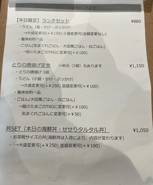 少し寒いですが、冷たいぶっかけうどんが食べたくて、唐揚げ定食にしました。