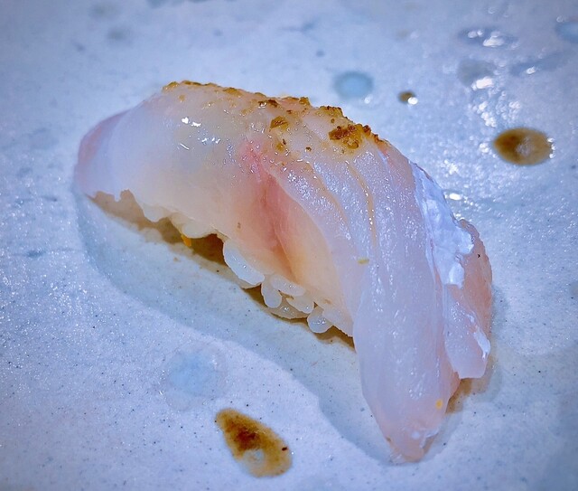 おまかせ握りは、「ヤリイカ」「ヒラメ」「石鯛」「ガサ海老」「ウマヅラハギ」「漬けマグロ」「イワシ」「ブリトロ」「大トロ」「バフンウニ」。醤油や柚子塩、胡椒ポン酢などで味を整えた上で出してくれる。どれも素晴らしく美味しかったが、「ガサエビ」と「イワシ」の美味しさは格別だった。