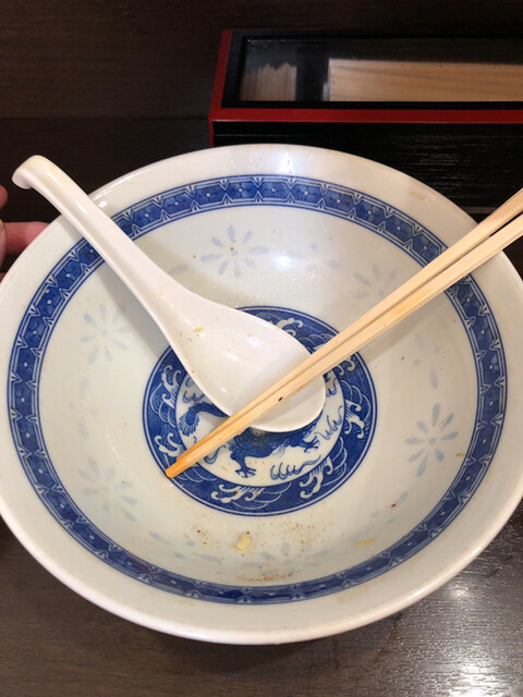 最後の方にお通しの皿に残ったラー油に卓上のニンニクと豆板醤をちょい入れてミニミニ油そばを楽しみ、スープも完飲してフィニッシュ!美味かった〜。久々に食えて良かった。何より最高のアサヒが飲めたのが嬉しかった〜(゚∀゚)