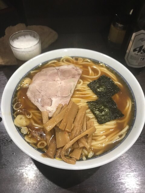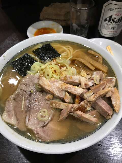 扉、開けっ広げだから寒いわ〜。上着着たままビールを。いつも通りチンカチンカのコップにチャーシューメンマのお通し。地球で一番美味いアサヒ!ラーメン待つのが苦にならない。というか楽しみ。今日は並び7番目だからセカンドロットなんですが、ゆっくり飲めるので寧ろありがたや〜(^人^)