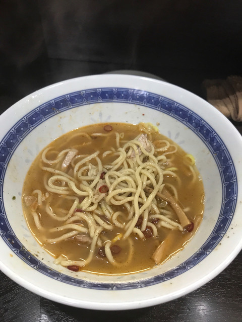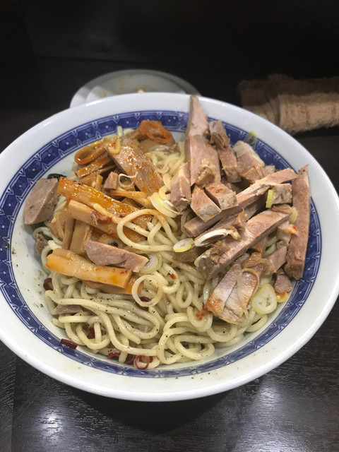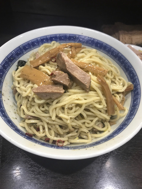 麺量も並だなこれ。と思ったが過去画像と比べれば余り変わらなかったです。最近二郎ばっかり行ってるから麻痺しちゃったのかな?まぜまぜしていただきます!相変わらず胡椒と鷹の爪が効いてペペロンチーノ風。チャーシューもメンマも麺と一緒にかっ込むと堪んない(^^)今日はビールもまだ残ってるから更に美味い!