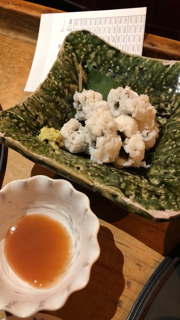 はもは韓国産というので連れは乗り気でなかったですが夏の京都ではもおとしを食べないなんてあり得ません。まぁ産地の違いが分かるほどはもを食べたことはないので問題なく美味しいです。表面もしっとりした食感で梅肉を伸ばしたたれで食べれば最高でした。
