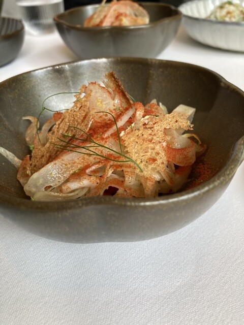 肝心のお料理も、ホントにどれもこれも、非常においしかったです。魚介が得意なんですかね、お料理に使われている魚介がとにかく上手く調理されていて、大満足でした。スパイスが使われていたり、ニョッキが出てきたり、何料理?なんだろう…と言う感じですが、どうやらオランダ料理のようです。味付けはしっかり目で、コースが終わるまで、とっても楽しく、美味しく頂けました。デザートだけは、普通かなぁー。と言う感じだったので、次回はデザート無しのコースにしようかな。接客は多少不慣れな感じでしたが、みなさん一生懸命働いている感じで良かったです。