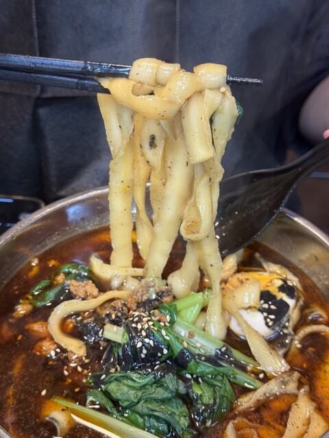 戦争映画で食欲がなかったのですが、スープも麺も大変美味しく、食欲がわいてきました。薬膳っぽい香りも私好みでした。麺はもちもちツルツルしています。