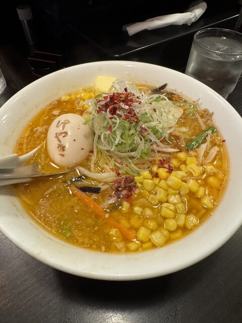 ネギもたくさんですが、炒めた野菜と豚肉がたくさん入っています。コーンもこれでもか、というぐらい入っており、バターと味噌がマッチしており、夢中で食べてしまいました。もちろん完食です。煮卵も中がトロっとしており、美味しかったです。