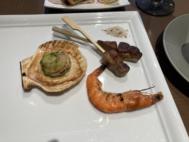 網焼きからホタテ、フォアグラ、ソフトシェルシュリンプ。食べやすいサイズでナイス^_^