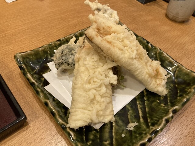二色アナゴ天、かわりは梅しそでした。梅酢もついてきて、使うと一気に梅干し感が増して面白い、お蕎麦香りがあったので私はそのままが好きかなあ。せいろといい、やっぱお蕎麦、硬さがちょうど良くて、それでいてふわっとしてるよなあ。醤油っぽい蕎麦つゆも、蕎麦湯でいただいていっそうに温まる。アナゴ天は、身が厚く、衣はモチっとタイプ。セリとブロッコリーの野菜天がついてきて嬉しい。お塩をお願いしていただきましたが、天つゆもお願いできるみたいなので、今度はそっちで楽しんでみよう^_^