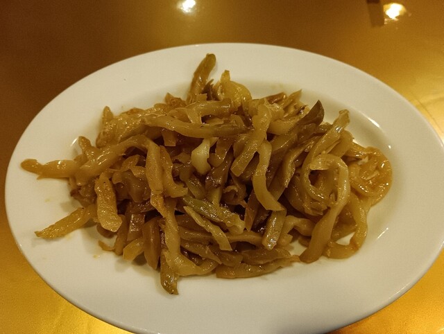 木曜日18時に会社仲間4名、席のみの予約で訪問。店内はテーブル40席程。何度か2次会で来ていますが酔いすぎて写真を撮り忘れ、今回ご報告となりました。先客は16名ほど。20時半に退店する時には満席でした。さて、注文したのは、辛い焼餃子、海老焼餃子、青菜とピータンのおかゆ、春雨サラダ、ザーサイ、トマトと玉子炒め、揚げワンタンのあんかけ、なすの唐辛子炒め(こちら是非ご賞味ください!)。ビール飲んで紹興酒10年を2本空けて大満足!美味しくいただきました。ご馳走様です。又、伺います。