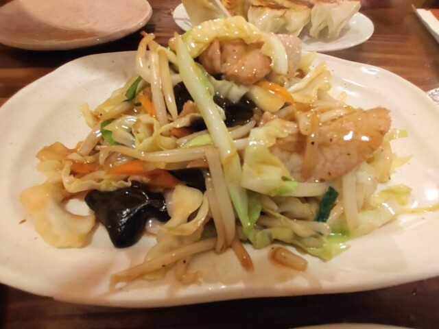 焼き餃子と肉野菜炒めはマストで欠かせないんですよ。