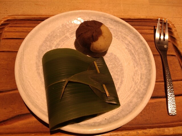 食後は選べるスイーツ二点のセットでくずねりとほうじ栗きんとんを。