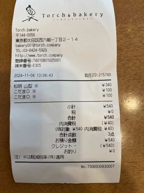 食事系のパンを買いたかったのですが、祝日の昼過ぎで売り切れが多かったようです。評判のよい松明食パンと、こだま2個を購入しました。