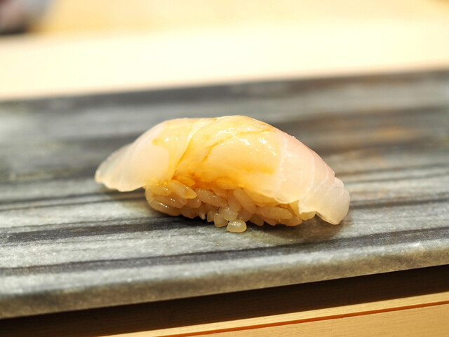 ✅すっきりシンプルな白身で、とにかく透き通った清涼感が強い。生魚と思えない澄み切った美味しさ。口の中が一旦リセットされたと思うほど。