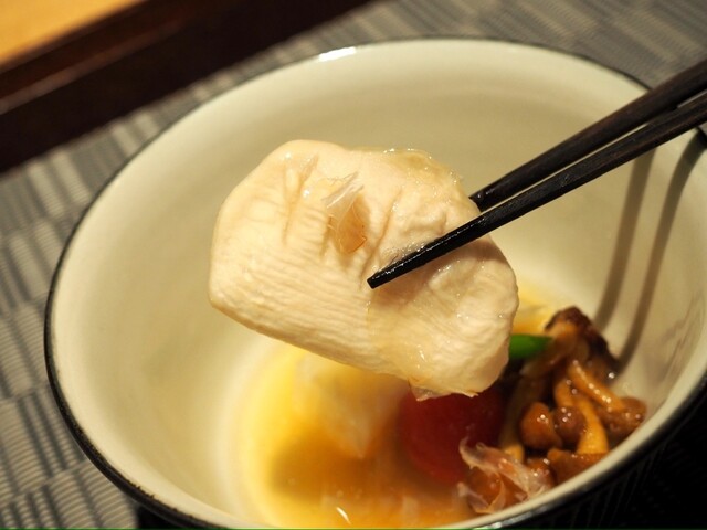 鶏肉は弾ける食感、イキイキとしたおいしさを感じる。大葉などの香りでクセなどもカバー、ソースと合わせた甘みもうっとりするほど良かった。