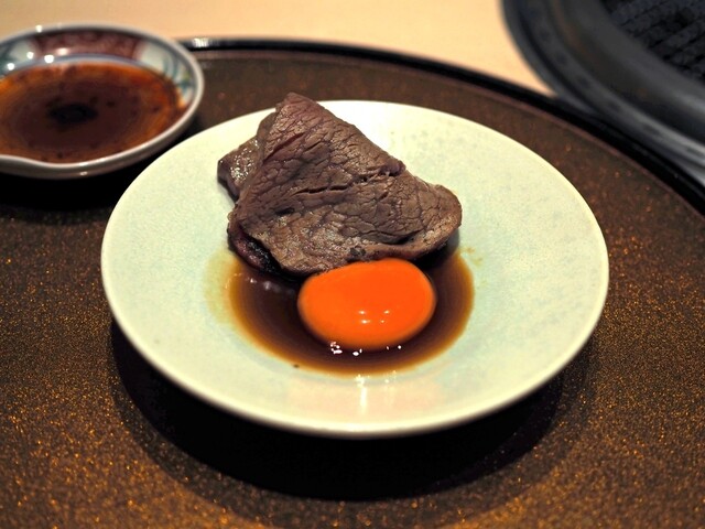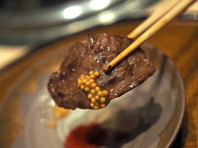 ✅この日はとうがらし。肩の部位なので軽めの焼きでとのこと。店員さんが焼いてくれる。