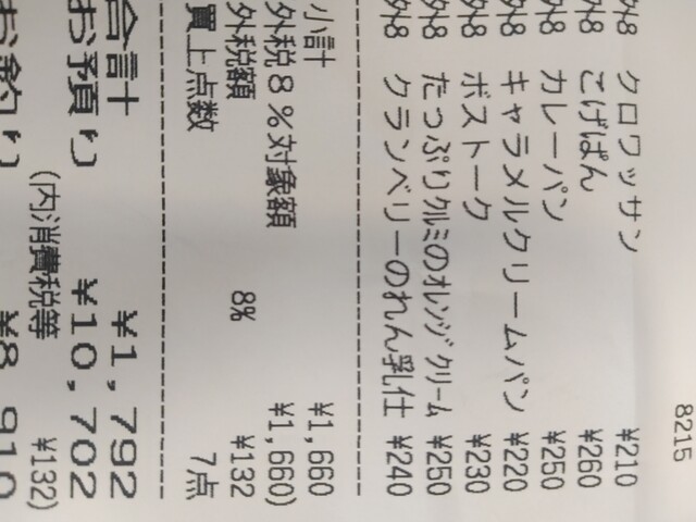 写真はクロワッサンしかないですが、今回は冷蔵ケースのシュガーバターたっぷりのブルーベリーのパン、クリーム挟まったクロワッサン、クニャーネ、クロワッサン、カレーパン、ベーコンのパンなど購入。