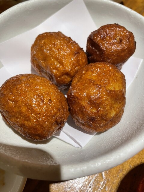 今回初めて頼んだのが、カレーボール、カキのオイル漬け、ツナサラダ。