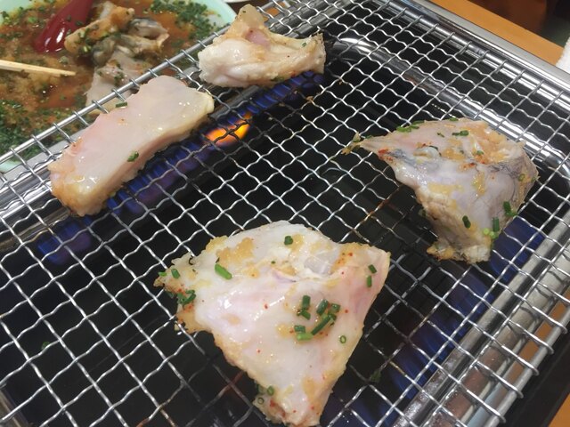 さてとこちらの人気メニューの焼きフグ。こちらはたっぷりの自家製のタレに漬け込まれたフグを焼き台で焼いて頂きます。