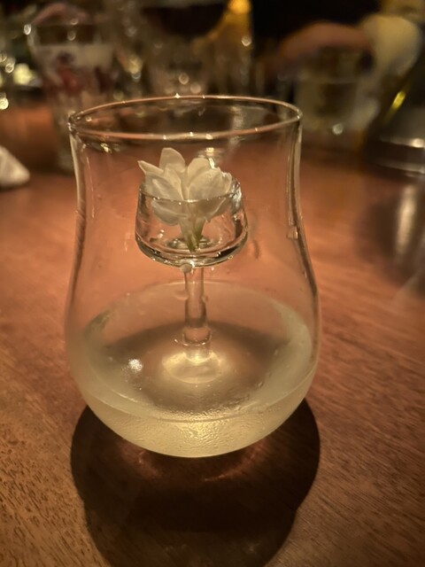 オリジナルの黄檗とスーズのトニック割りドリンク。前回美味しかったのでボトルは見当たらなかったですがお伺いしたらご用意があったのでお願いしました。ビターで芳醇な香りがいいですね。前回の方が黄檗感が強かった気もしました。慣れかもですね。スッキリとレモンも効いていて1杯目にピッタリでした。