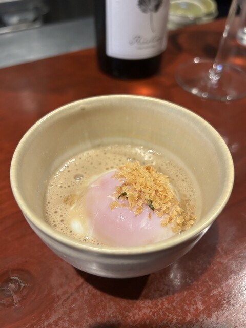 たまんごまマンゴーを餌に作っている鶏の卵だそうです。かなり濃厚で大きい。ふるさと納税してるそうです笑。アスパラガスの青い香りと甘みにマッシュルームベースのソースが香り高くて素晴らしかったです。