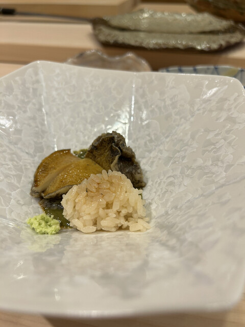 めちゃめちゃ柔らかい。味付けも最小限で鮑を立ててます。肝ソースにご飯を合わせて濃厚さを余すことなく、山葵のアクセントがまた合います。