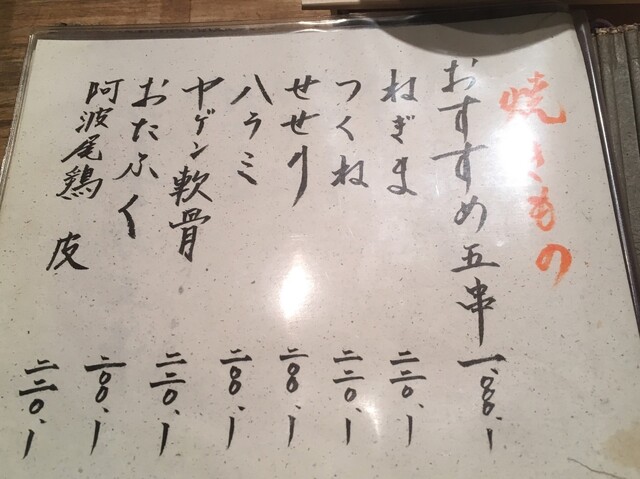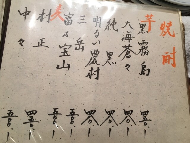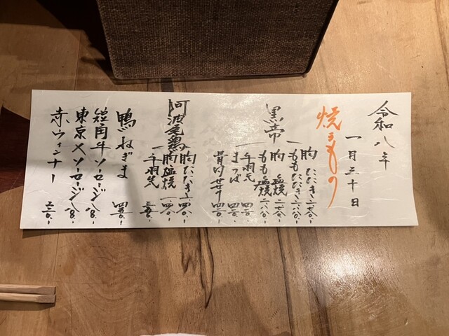大将の指定された席に着いて、メニュー確認。