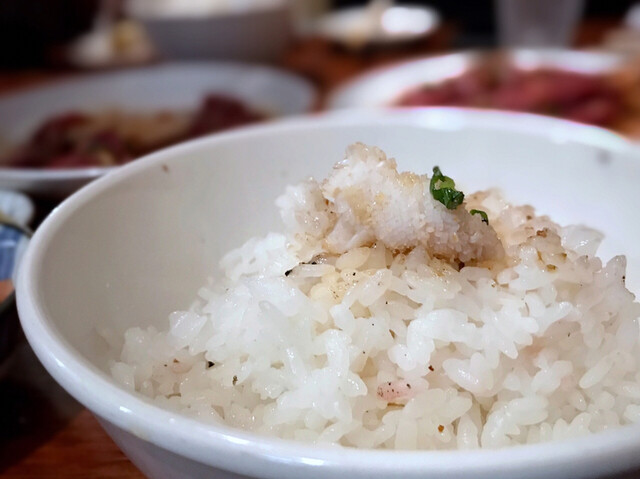 タンの下には、びっしりのごま油で和えた刻みニンニク。